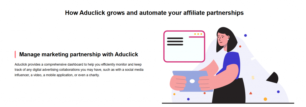 Aduclick helps brands centralise and optimise all partnership activity—affiliate programs, influencer collaborations, mobile-app integrations, media partnerships, and charitable campaigns—within one interface.