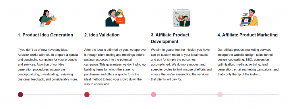 Affiliate Product Development – Once a product or offer proves viable, Aduclick coordinates creative production, landing-page builds, and tracking infrastructure. The commercial logic is outcome-based—advertisers pay only for results such as verified leads or sales.