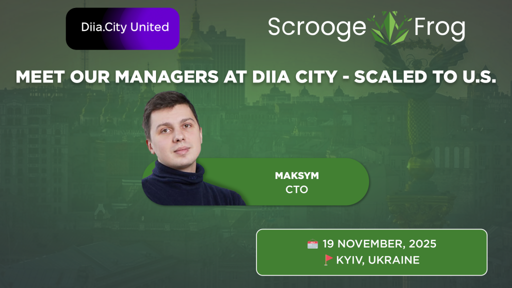 We’re excited to announce that Maksym, CTO of ScroogeFrog, will be attending the upcoming “Scaling to the U.S.” event hosted by Diia City United.