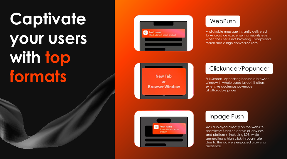 Web Push remains one of AdOperator’s highest-engagement formats. Ads are delivered directly to users’ browsers or devices and remain visible even after the browsing session ends. This persistent presence leads to consistently high CTRs, especially in mobile-dominant markets.