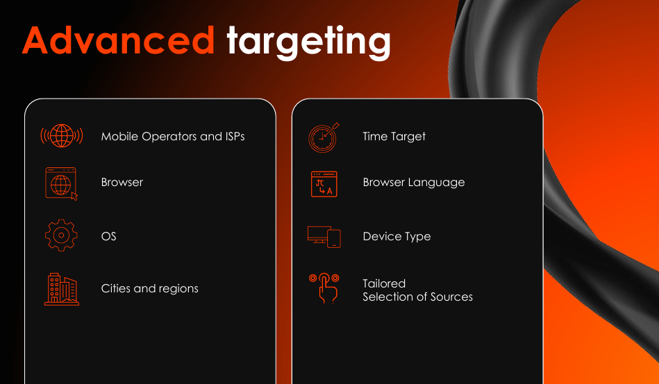 AdOperator enables advertisers to apply multi-layer targeting across device type, operating system, browser, carrier, ISP, language, GEO, and delivery timing. This granularity allows advertisers to isolate high-performing audience segments and allocate budgets precisely.
