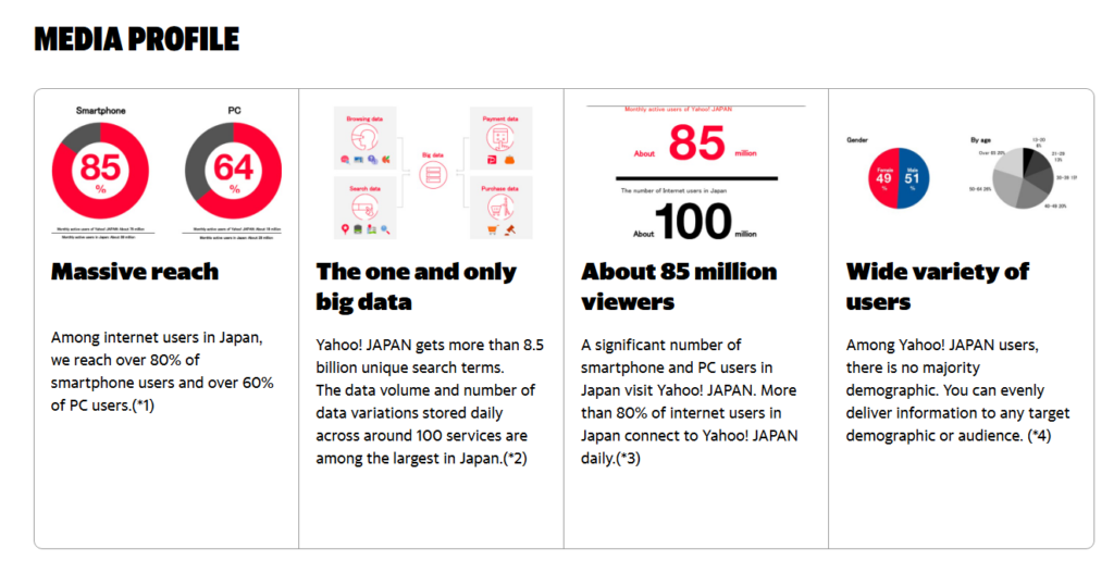 Yahoo! JAPAN Ads is the core advertising platform of Yahoo! JAPAN, Japan’s largest local web portal and one of the country’s most heavily used digital ecosystems. For a substantial share of the Japanese population, Yahoo! JAPAN functions as a daily digital gateway, combining search, news, finance, shopping, maps, email and partner services within a single environment.