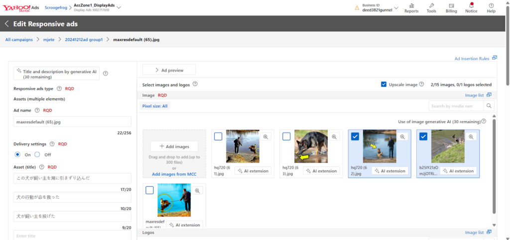 A key evolution within Yahoo! JAPAN Ads is the growing integration of AI-assisted and Generative AI capabilities. Within display advertising, advertisers can use generative AI tools to assist in creating ad titles and descriptions, accelerating creative production and iteration while remaining aligned with platform guidelines. Responsive ad formats allow multiple creative elements to be uploaded, with the system dynamically assembling and optimizing combinations based on observed performance signals.