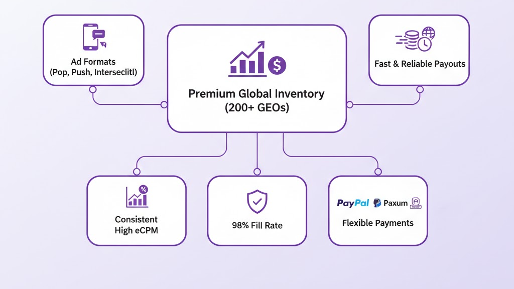 Smart Link & Direct Link: Algorithms that automatically match the best-performing offer to specific traffic types, ensuring a 100% fill rate for remnant or redirect traffic.