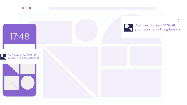 Push Notificaton: Display Personalized messages to users in an ad-like format Supports multiple devices and browsers