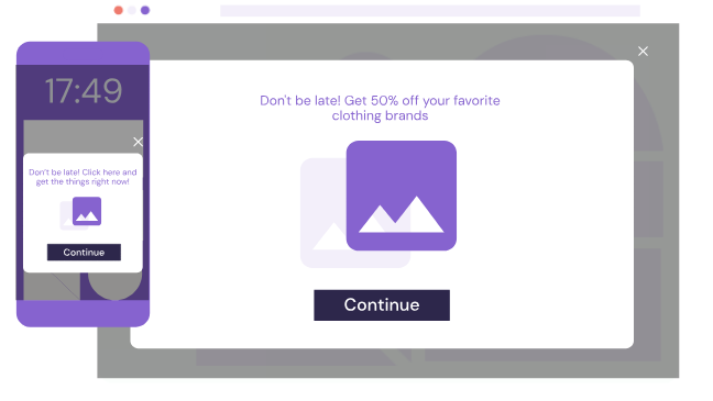 Inpage push (floating banner): A web-based sliding banner that resembles push notifications