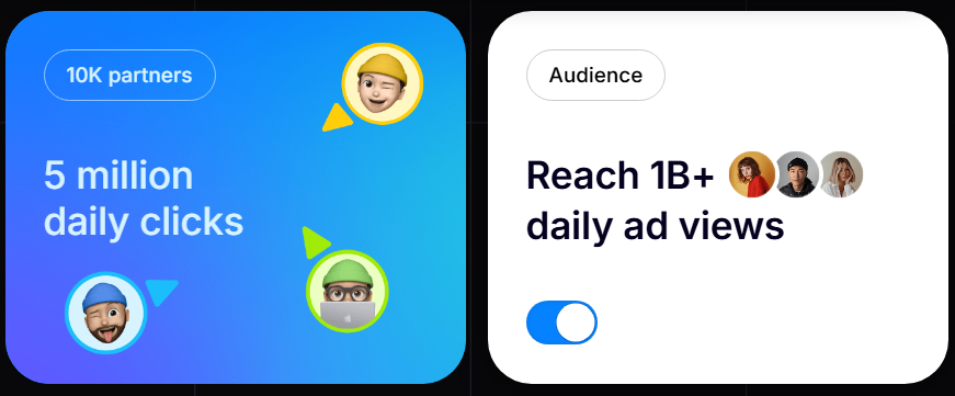 - 5 Million+ Daily Clicks: Speed is everything. High-velocity traffic means you get statistically significant data in hours, not weeks. You can test, kill failing creatives, and double down on winners faster than your competition can refresh their stats.
